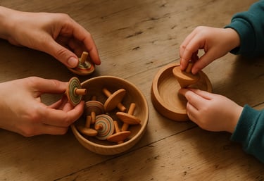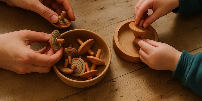 Our unique wooden holder doubles as a spinning toy, making it fun for kids to enjoy.